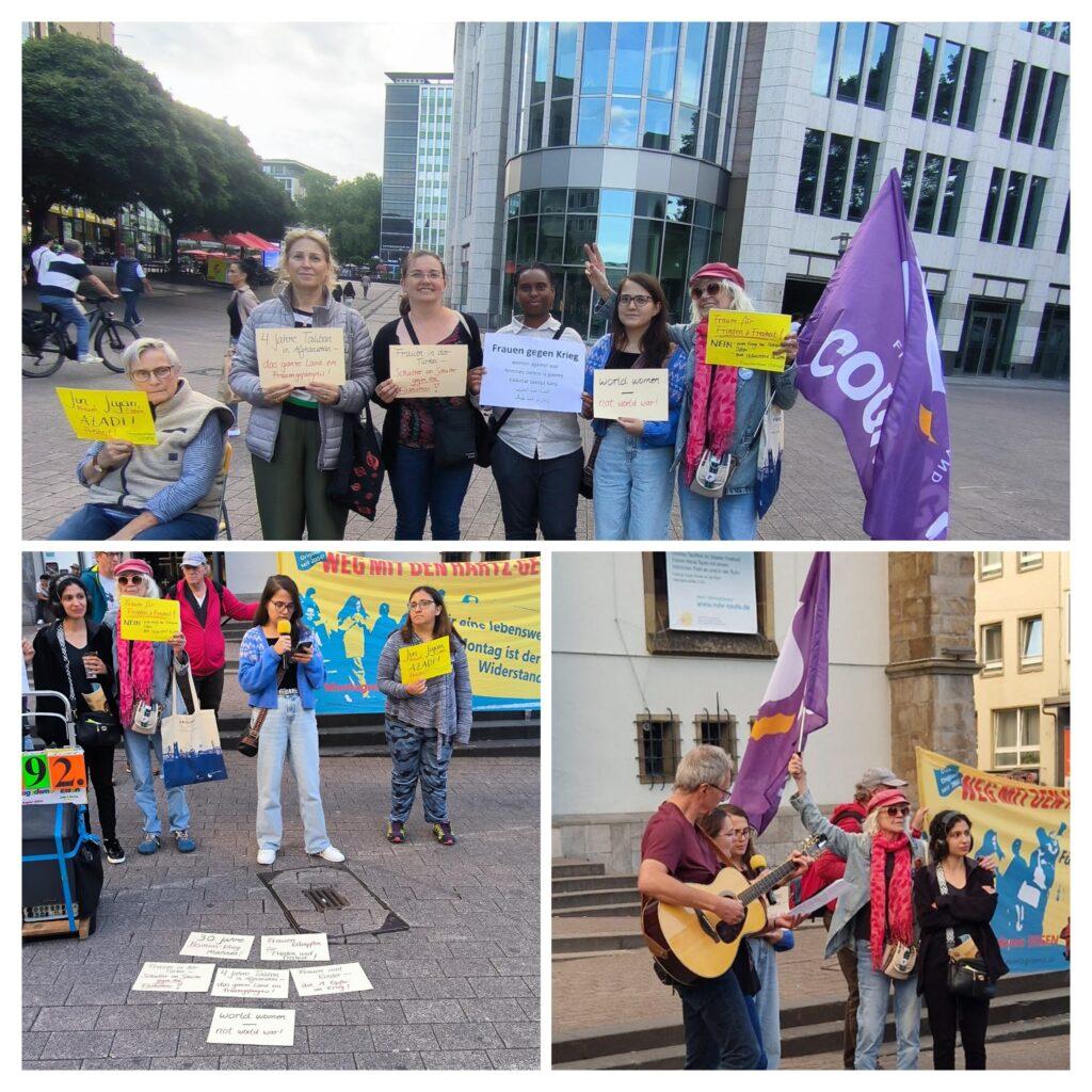 Wir sind bei der Vorstellung von den vielen Gemeinsamkeiten unserer Verbände ausgegangen: soziale Rechte einfordern, erhalten, verteidigen. Für Vielfalt, gegen Ausgrenzung, Rassismus, Faschismus, Abschiebungen…Der VdK hat dabei mehr die Rechte von Behinderten, Alten, Kranken im Fokus, wir die der Frauen und echte Gleichberechtigung mit Männern, Rechte der migrantischen Familien und aller Geschlechter, wo sie unterdrückt werden. Auch schauen wir über die engen Grenzen einer Gesellschaft hinaus, die von Profit regiert wird diskutieren wir über Wege der Befreiung der Frauen weltweit in befreiten Gesellschaften.