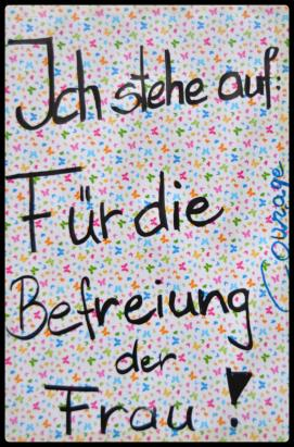 BIld mit Text ""Ich stehe auf für die Befreiung der Frau!"